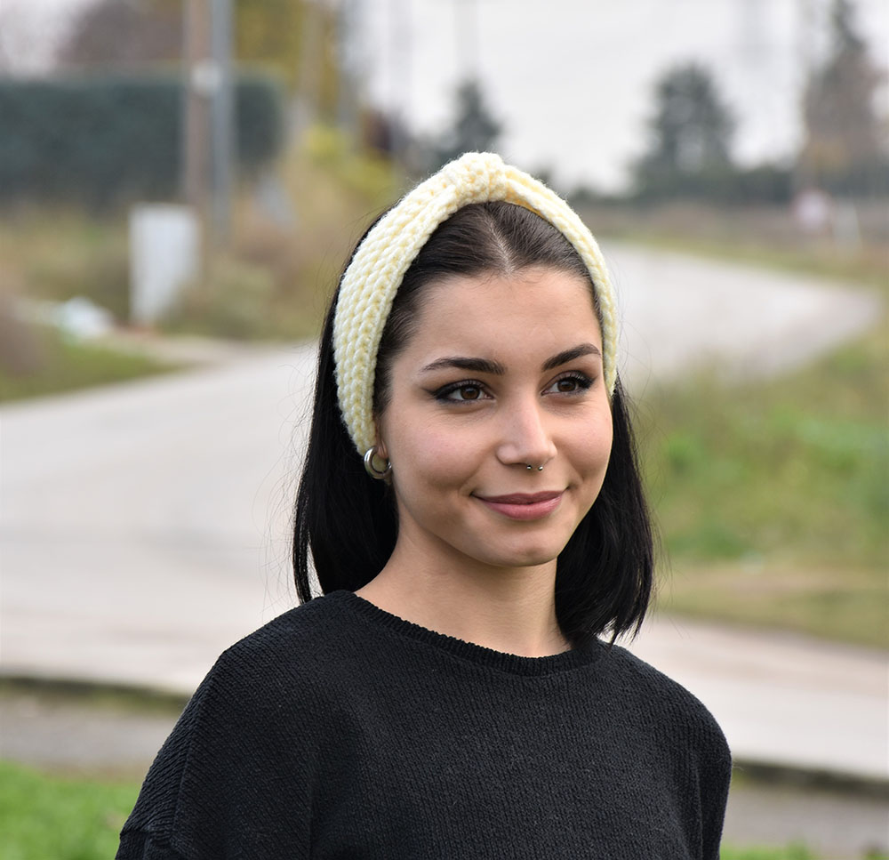 Κορδέλα σε λευκό χρώμα παρέχοντας ζεστασιά στα αυτιά ενώ ταυτόχρονα κρατάτε τα μαλλιά σας ψηλά.